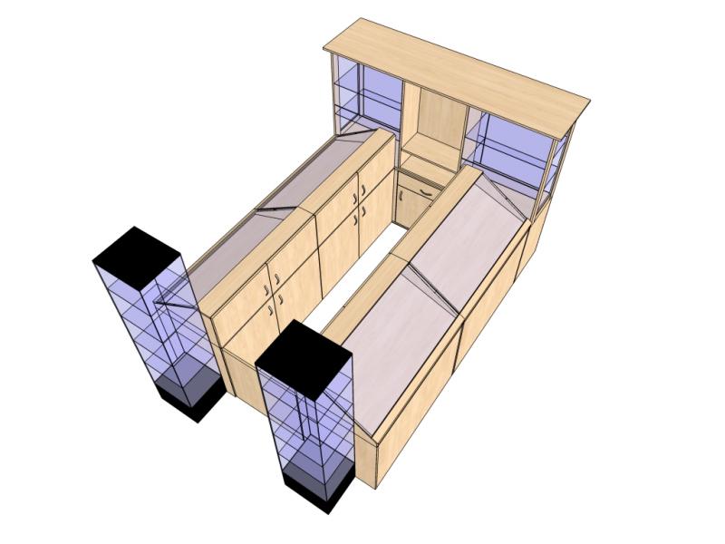 3D návrhu prodejního stánku se řídíme pravidlem ,,komplexního řešení" tedy spojením prodejního stánku s obchodním centrem ve kterém bude stánek umístěn. Poradíme s výběrem vhodného osvětlení, členěním skříní a dalších doplňků.Z