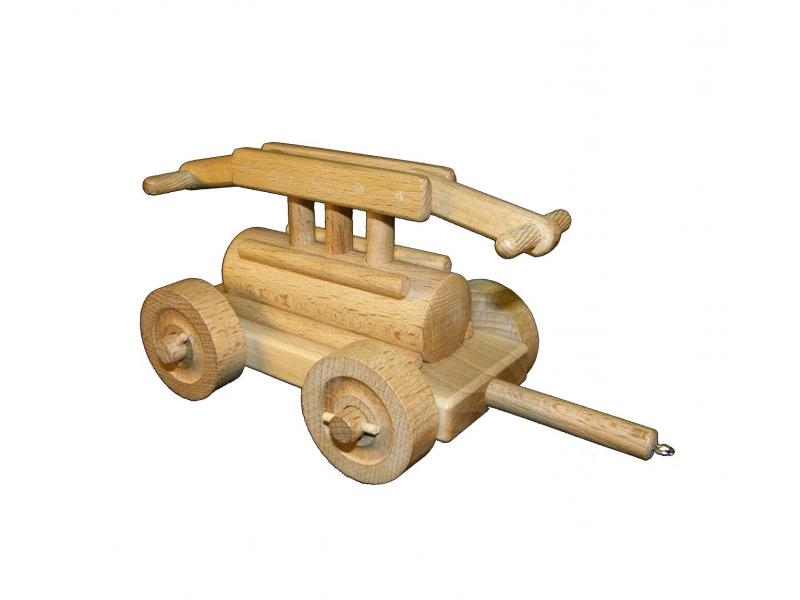 Dřevěná stříkačka má pohyblivé kolečka.