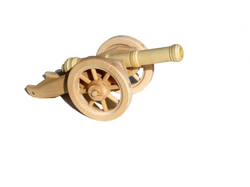 Dřevěné dělo má pohyblivé kolečka i hlaveň.