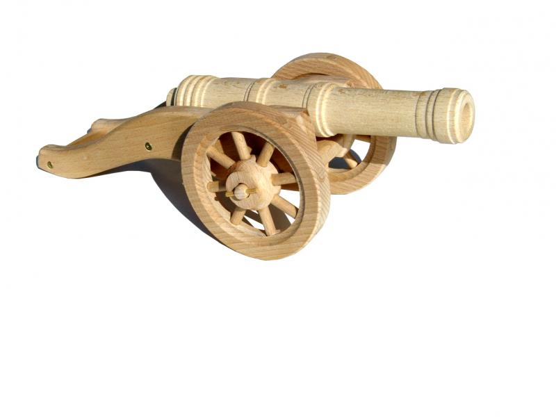 Dřevěné dělo má pohyblivé kolečka i hlaveň.