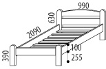 Cena postele s roštem, bez doplňků.Pro rozměr matrace 90x200cm.