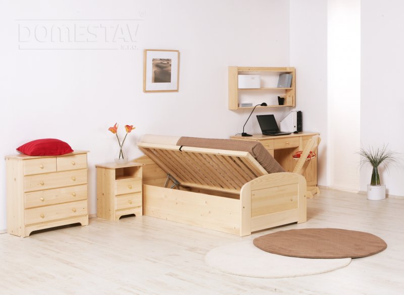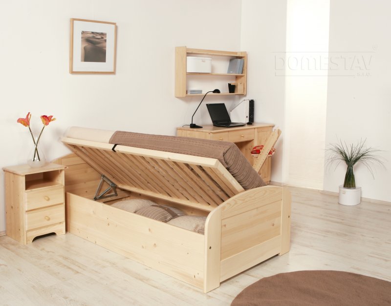 Cena postele s roštem, bez doplňků.Pro rozměr matrace 90x200cm.