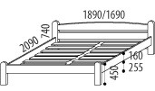 Cena postele s roštem, bez doplňků.Pro rozměr matrace 90x200cm nebo 80x200.