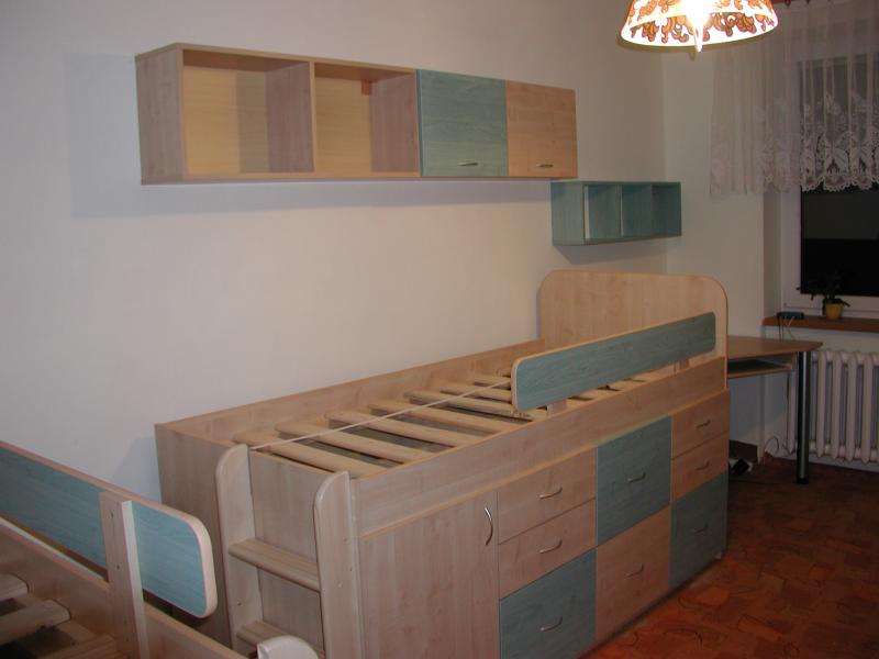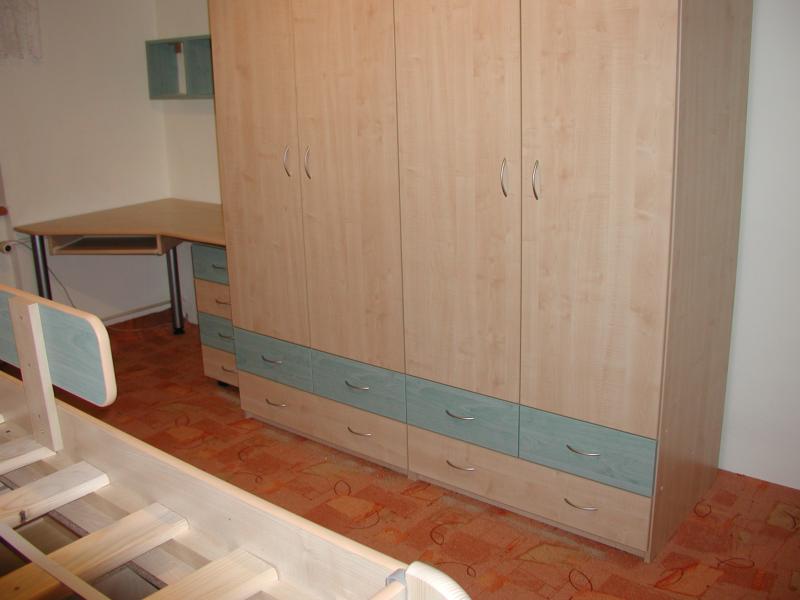 Dětské a studentské pokoje vyrábíme na míru dle vašich přání a dispozic místnosti. Samozřejmostí je výběr barvy, členění atd... Na každý