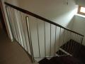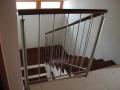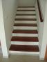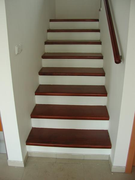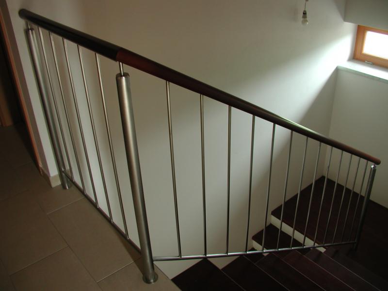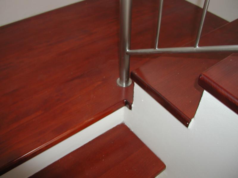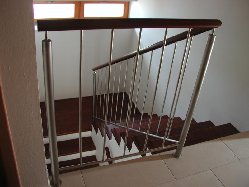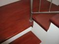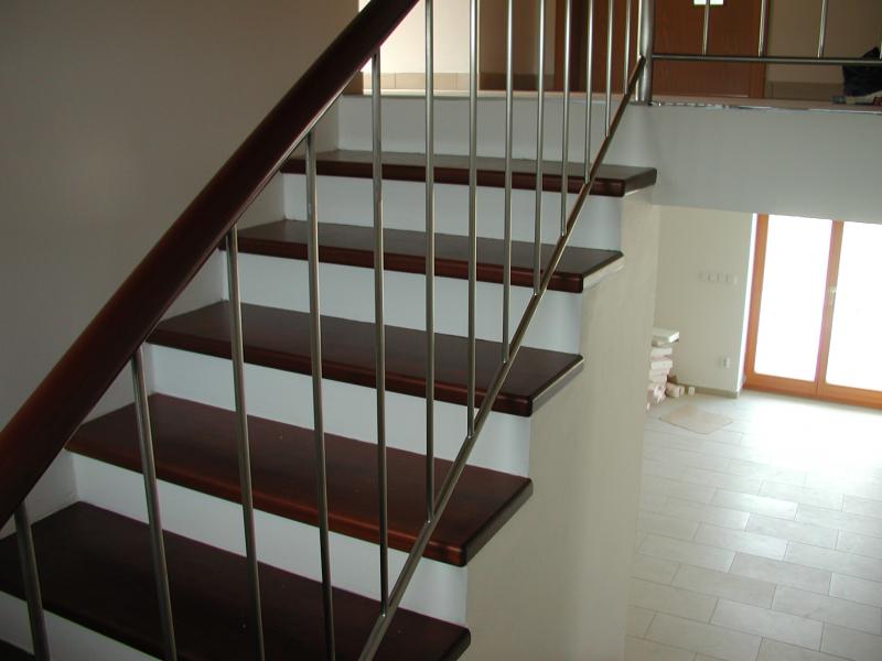 Schodiště masiv mořený do červena a nerez zábradlí